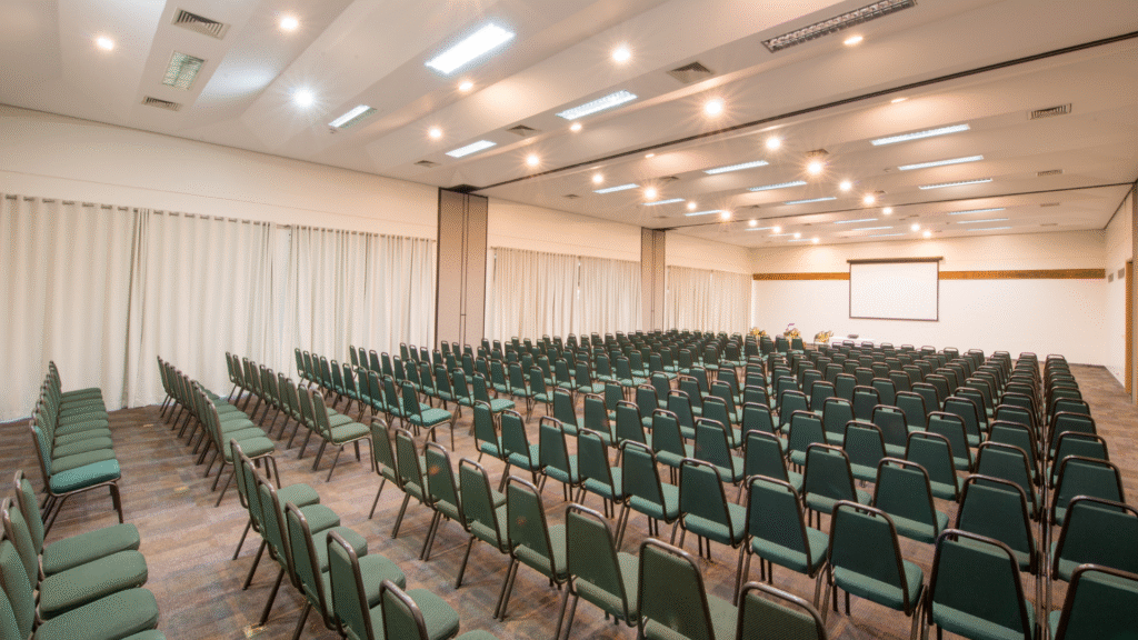 São 18 opções de espaços com estrutura completa para pequenos, médios e grandes eventos. Os espaços incluem salas com telas de LCD para comunicação e sinalização, Wi-Fi e uma sala VIP. A Sala SerrAzul, com 64m² e capacidade para 500 pessoas em auditório, é ideal para convenções e exposições. O CYAN RESORT oferece serviço completo de banquetes com cardápios temáticos, bem como espaço para exposição de veículos de grande porte.