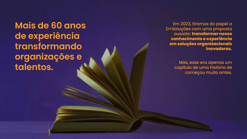Lado a lado com cada cliente, a D+ desenha e implanta soluções sob medida para apoiar o RH em desafios de gestão, cultura, desenvolvimento de liderança, desempenho e transformação digital. Aliados às melhores práticas do mercado, mas sempre priorizando a necessidade de cada cliente, a D+ oferece um portfólio de soluções para empresas que buscam: